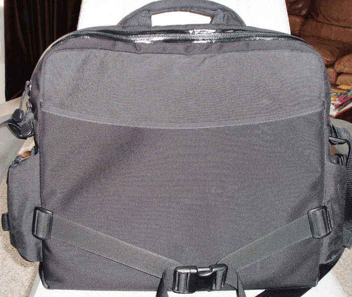For those of you, like me, who have more to carry around than just a laptop---you'll want to put that Brain Cell into something. For the more corporate among you, it might be something formal like the Empire Builder. For me, though, it's the monster messenger bag: the Super Ego. Here's Tom's picture: